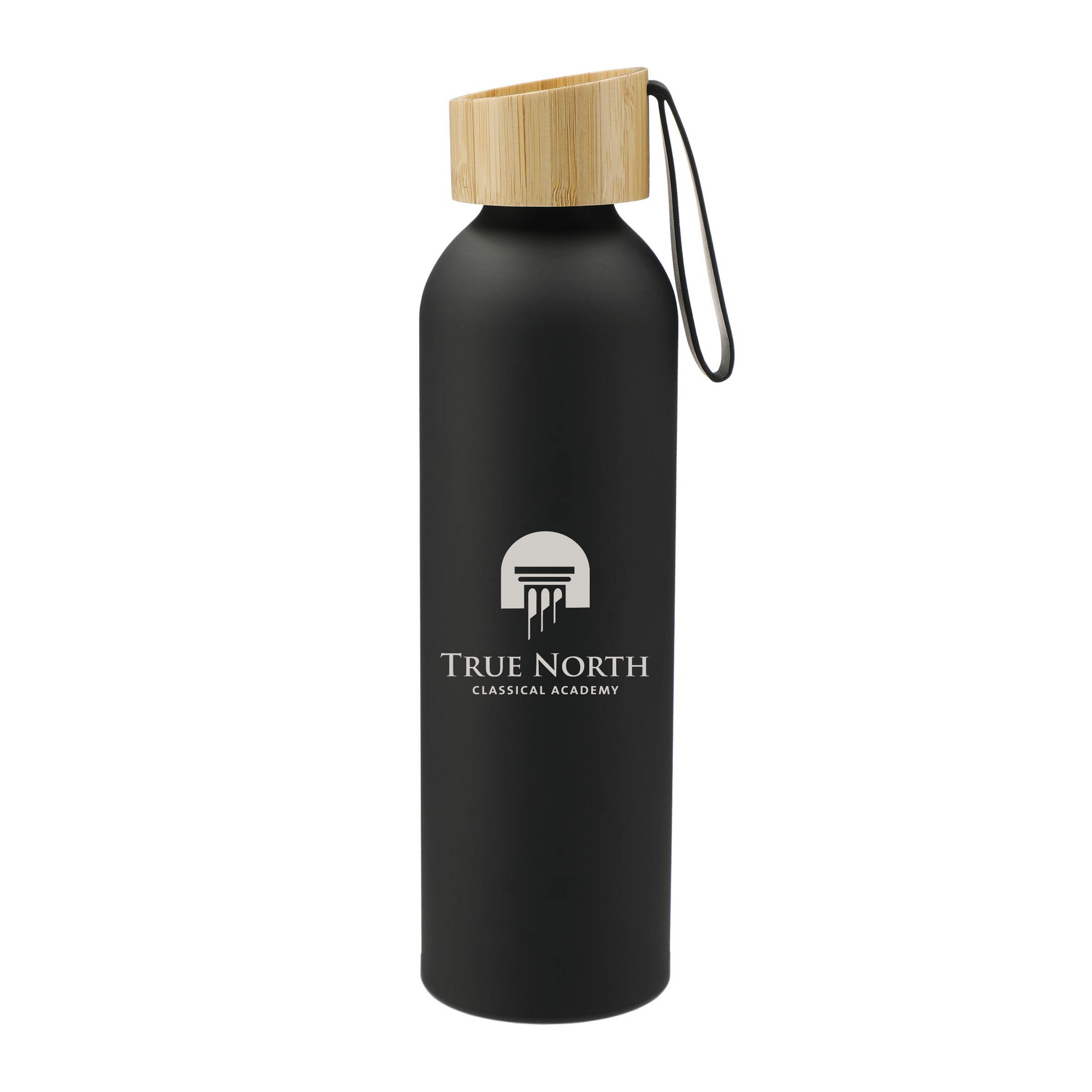 Hydrate in style with the True North Aluminum Water Bottle, featuring a sleek matte metallic finish and a natural FSC® bamboo lid. The 22oz single-wall design keeps it lightweight, while the built-in silicone strap makes it easy to carry wherever life takes you. Finished with the laser-etched True North logo, this bottle is as functional as it is eye-catching.